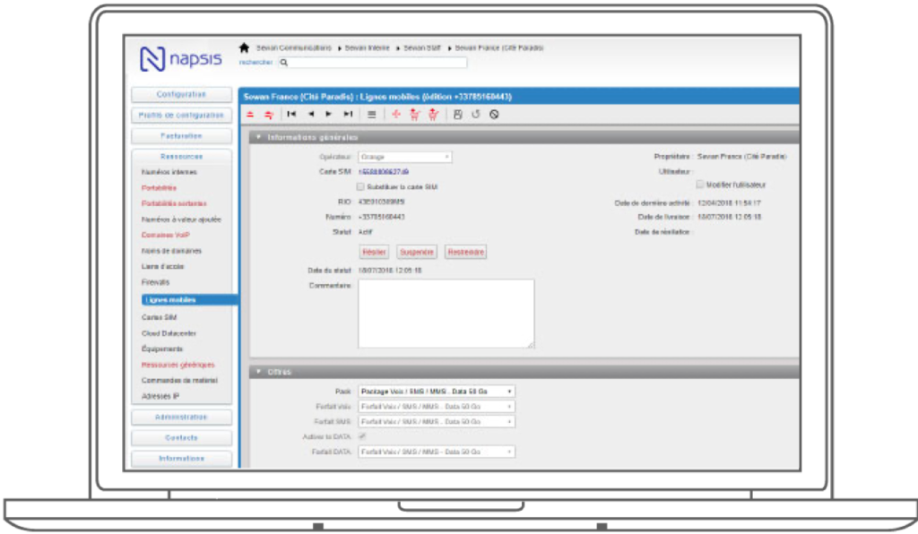 Tous les services avancés listés plus haut sont paramétrables directement via une interface web. Vous visualisez facilement vos lignes et vos forfaits mobiles. Cette solution offre une grande souplesse d’utilisation et permet de réunir vos lignes de téléphonie mobile au sein d’une plate-forme plus vaste afin de proposer une offre de convergence fixe et mobile.